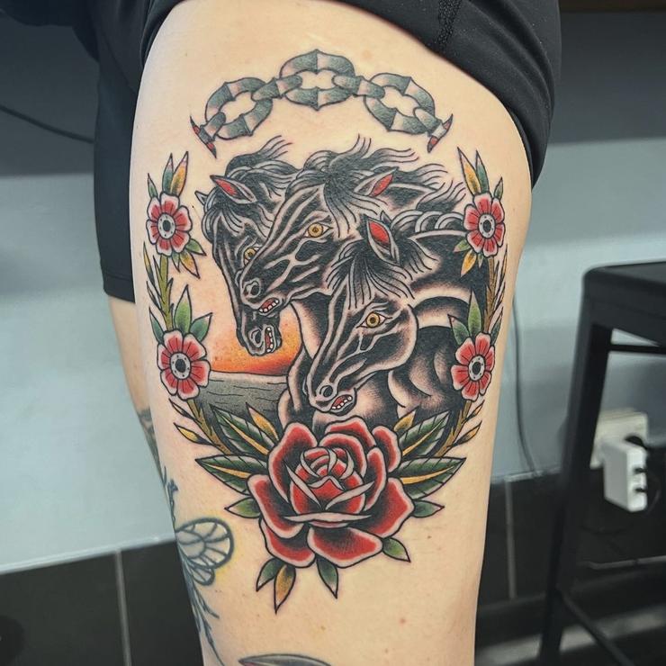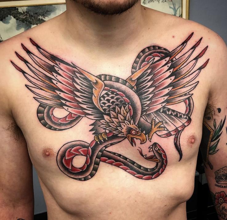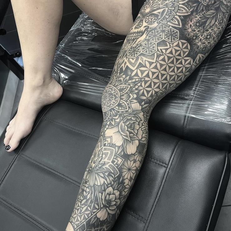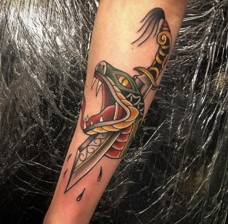 "Yo, I'm Gem. I have been tattooing since early 2016 and loved every minute of it. I really enjoy creating traditional tattoos but also have a soft spot for dotwork/mandala pieces. I've worked in a few shops over the years but never somewhere that feels quite as homey as Golden Monkey. This studio just has the best crew, best vibes and always makes you feel so welcome. I'm thankful for all the new clients I get to meet and of course my regulars that keep on coming back year after year. I bloody love you all! I cant wait to work with you on whatever piece we create together next. Come get stabbed! Peace"